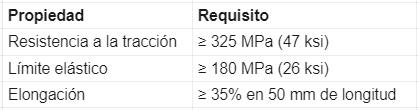 Según el estándar ASTM, el material debe cumplir con los siguientes límites: