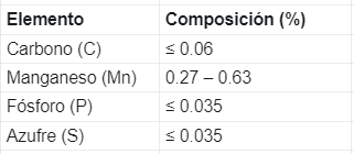 Según el estándar ASTM, el material debe cumplir con los siguientes límites: